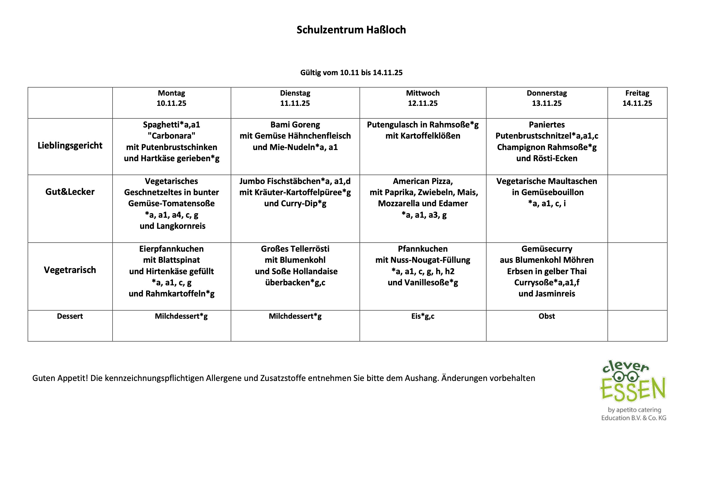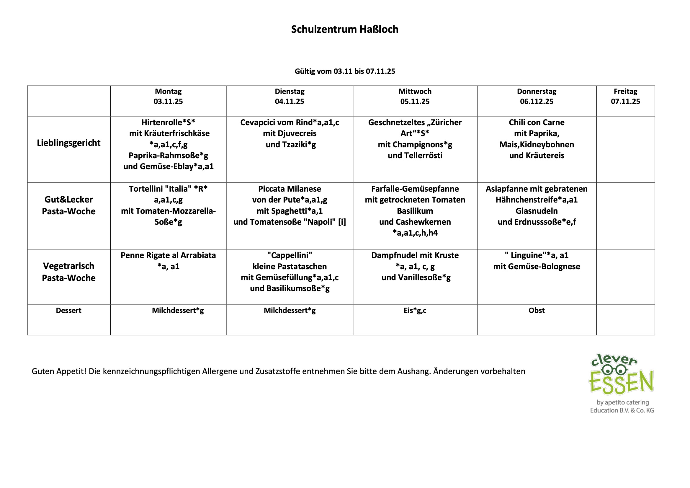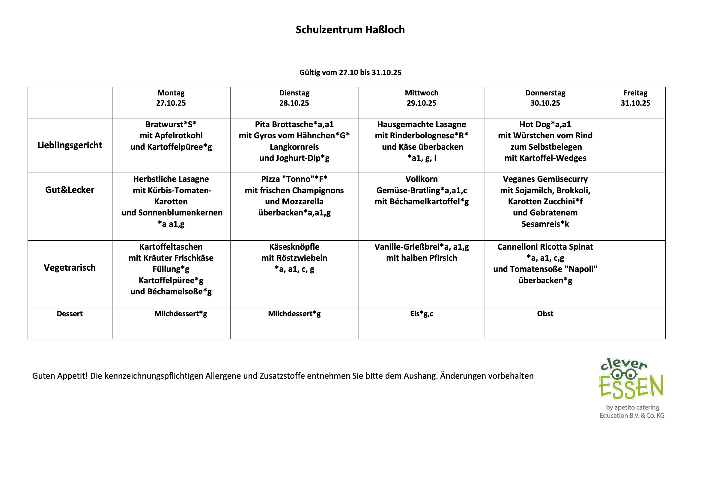 Hier findet man den neuen Speiseplan für die Kalenderwochen 44 bis 47 (27. Oktober bis 21 .November). Zum Vergrößern bitte anklicken.